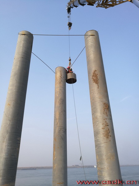 長(zhǎng)江27米的水位,樁接頭仍在水中
